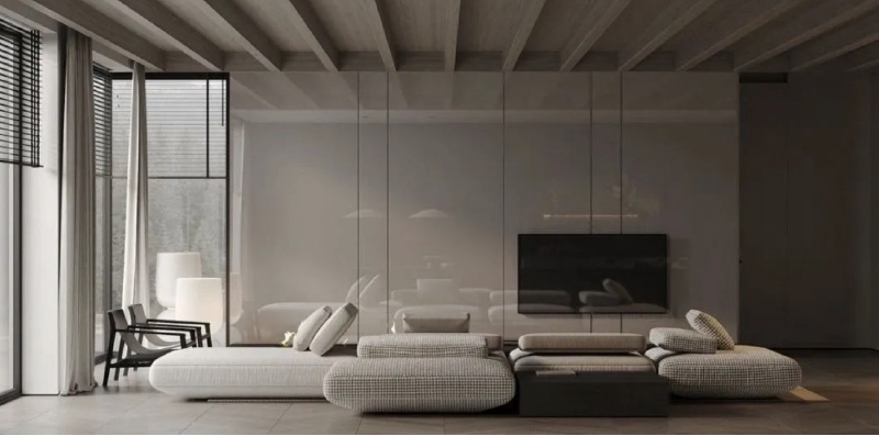 秉承现代主义的克制与简约原则,颠覆以往木纹浓墨重彩的纹理色彩,只保留其细节肌理,赋予素净而低调的色泽,让纹理与素色美学相结合。